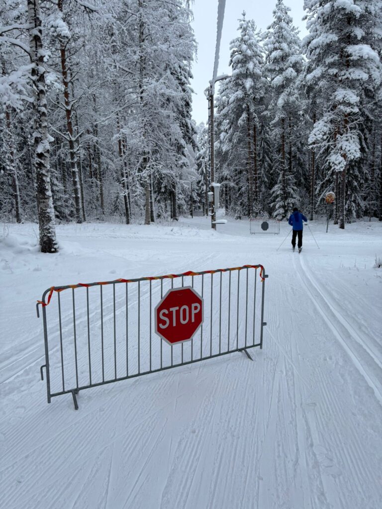Kaikkien turvallisuuden takaamiseksi tehostetut merkinnät ja rajoitteet toimitettu tänä aamuna Lehdontien tienylitykseen. Tervaharjuntien tienylityksessä puomi on jo ollutkin. Puomit toimivat myös pieninä ajoesteinä latupohjilla asiattomasti liikkuneille.