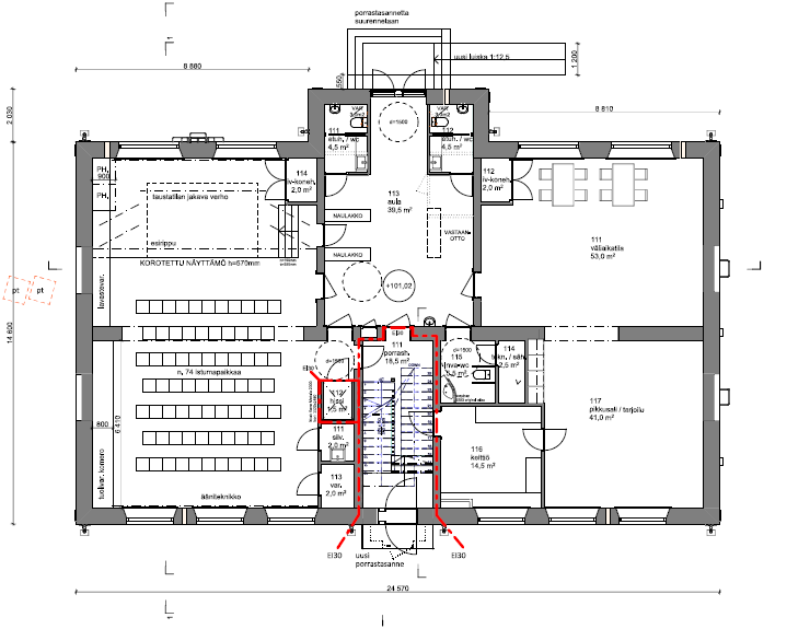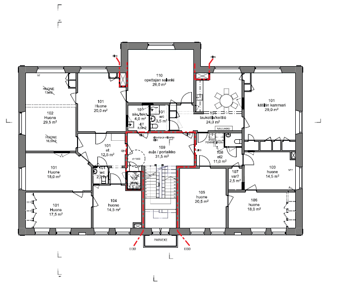 Rakennuksen sisäosien purkutyöt on nyt saatu valmiiksi. Seuraavana on vuorossa rakennuksen tekninen suunnittelu. Tekninen suunnittelu käsittää rakenne ja LVISA -suunnittelut. Vaikka rakennuksen rakenteet ovat ikäisekseen hyvässä kunnossa, niin rakennesuunnittelussa nykyiset rakenteet vielä tarkistetaan sekä suunnitellaan niiden tarvitsemat vahvistukset sekä muut parannukset. Tavoitteena on tehdä sellaiset rakenteet, jotka kestävät taas seuraavat 100 vuotta. LVISA suunnittelu tähtää siihen, että vanha rakennus saa nykyaikaisen teknologian palvelemaan rakennuksen käyttäjiä.